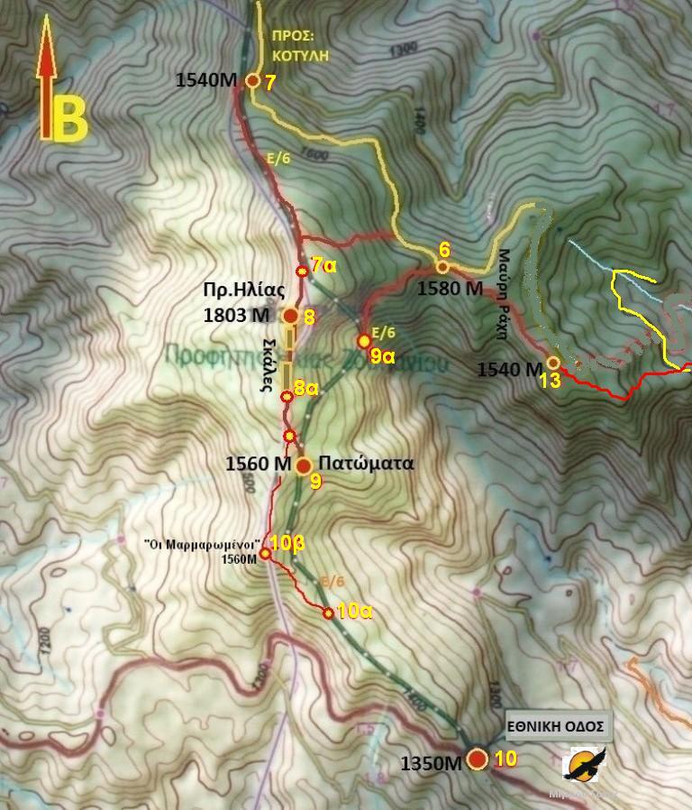 Εθνική Οδός Αυχένας 1350Μ – Σκάλες - Προφήτης Ηλίας - Βόρια Ράχη – Ε/6 Παλιό Φυλάκιο - Πατώματα –Αυχένας. (Κυκλική διαδρομή)