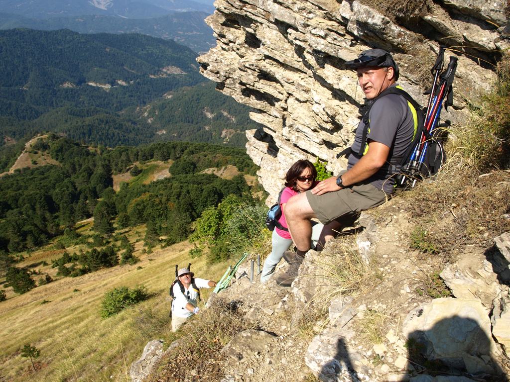Α) Φροντίζουμε εάν είμαστε μεγάλη ομάδα να μην συνωστιζόμαστε στο μπαλκόνι μετά την πρώτη σκάλα αλλά να προχωράμε λίγα μέτρα ψηλότερα στην πλαγιά.