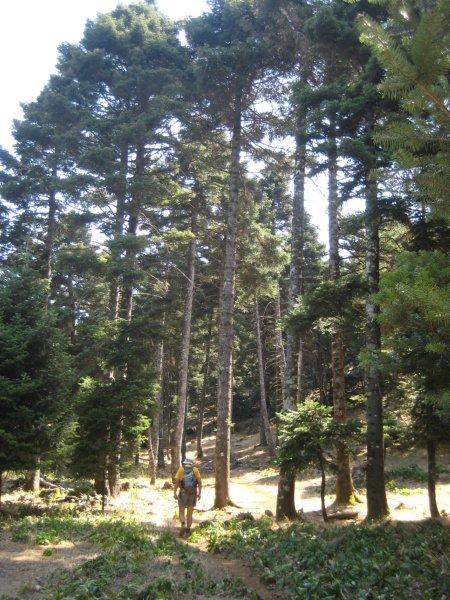 Γυρνώντας σπίτι βρήκα στο ίντερνετ μια περιγραφή της ανάβασης που λέει ότι η διαδρομή ακολουθεί για αρκετή ώρα ένα δασικό δρόμο που χρησιμοποιείται από υλοτόμους. Εμείς τέτοιο δρόμο δεν βρήκαμε και η πολύ καλά σηματοδοτημένη διαδρομή που ακολουθήσαμε, κινείται στο μεγαλύτερο μέρος της σε όμορφο μονοπάτι μέσα στο ελατόδασος.