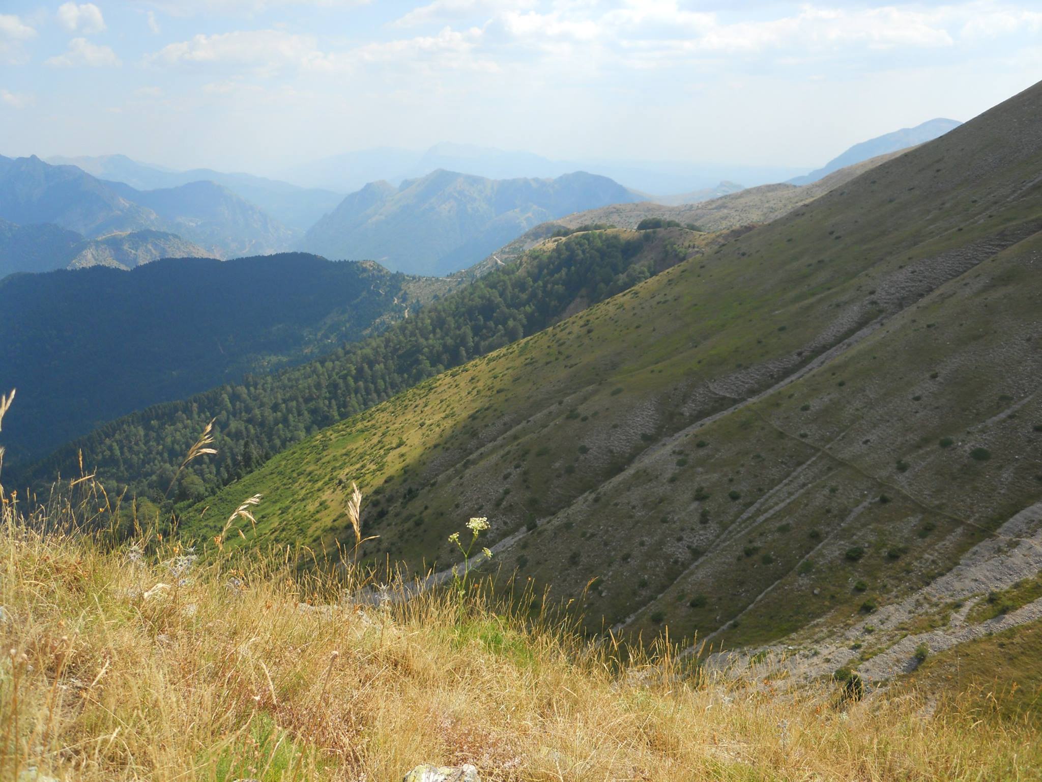 Για να μην κανουμε μεγαλυτερη τραβερσα Κατηφορησαμε προς το δασος οξιας που φαινεται για να χασουμε υψος αλλα μετα πεσαμε σε πλαγιες με φτερες που μας παιδεψαν πολυ στην καταβαση μεχρι τον δασικο δρομο