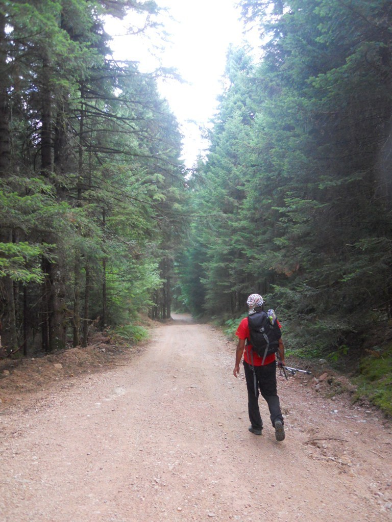 Το πρόβλημα ήταν στην τραβέρσα της ράχης ψηλότερα (από τα 1200 έως τα 1350μ) μέσα στο δάσος όπου υπήρχαν σε σημεία εμπόδια πεσμένοι κορμοί και χανότανε σε κάποιες μεριές (αλλά το ξανάβρισκες). Μετά τα 1350 που έβγαινες σε ανοικτή πλαγιά αριστερά -εκεί και η πηγή- το μονοπάτι χανότανε, αλλά έβγαινες εύκολα στον αυχένα που τον έβλεπες από πάνω