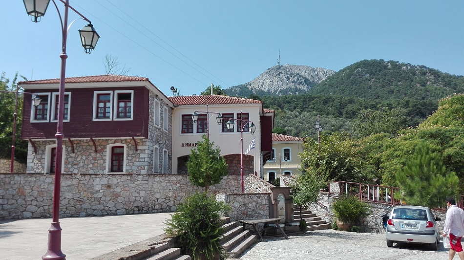 πίσω από το δημαρχείο φαίνεται το υψηλότερο βουνό ενός νησιού..