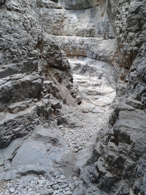 Φαράγγι της κρήτης (η φωτογραφία σε ένα από τα πιο στενά σημεία του). Είναι, νομίζω, από τα πιο τουριστικά φαράγγια, γιατί είναι βατό και εύκολο. Αν θέλει κάποιος να κουραστεί, πρέπει να το ανέβει και όχι να το κατέβει.
