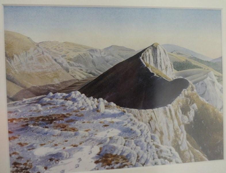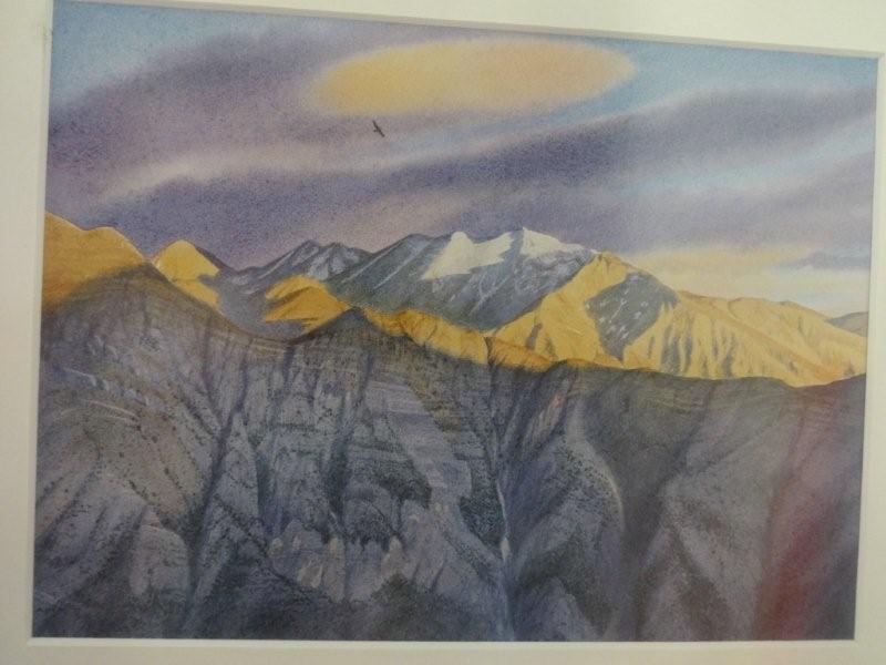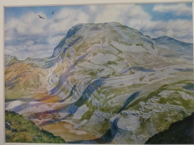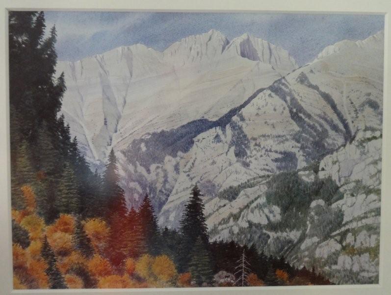 Το θέμα ήταν πολύ γνωστές κορυφές Ελληνικών βουνών, ζωγραφισμένες με νερομπογιά από έναν Άγγλο από αυτούς που είχαν εκείνη την εποχή το Πάπιγκο για στέκι τους. Πριν το κατακλύσουν οι γκλαμουράτοι με τις τζιπούρες.