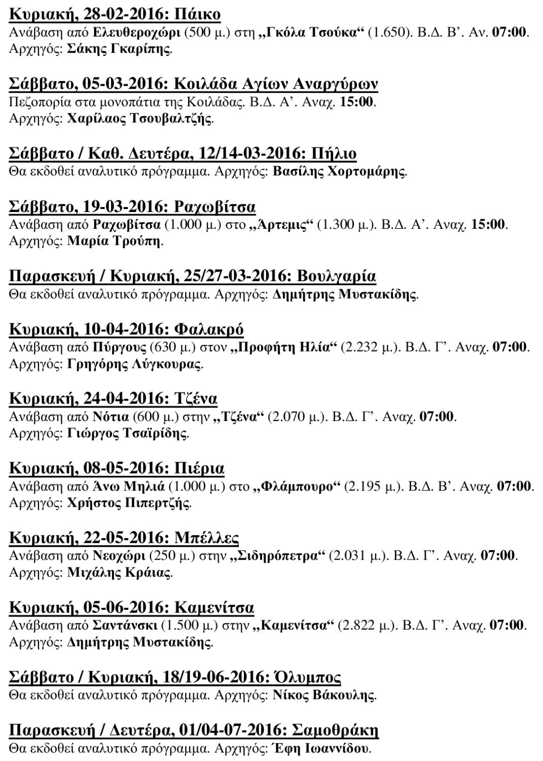 Αναβάσεις Ορειβατικής Λέσχης Σερρών 2015-2016