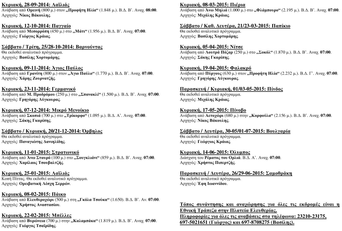 Αναβάσεις Ορειβατικής Λέσχης Σερρών 2014-2015