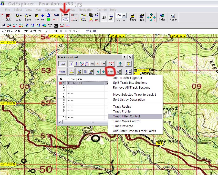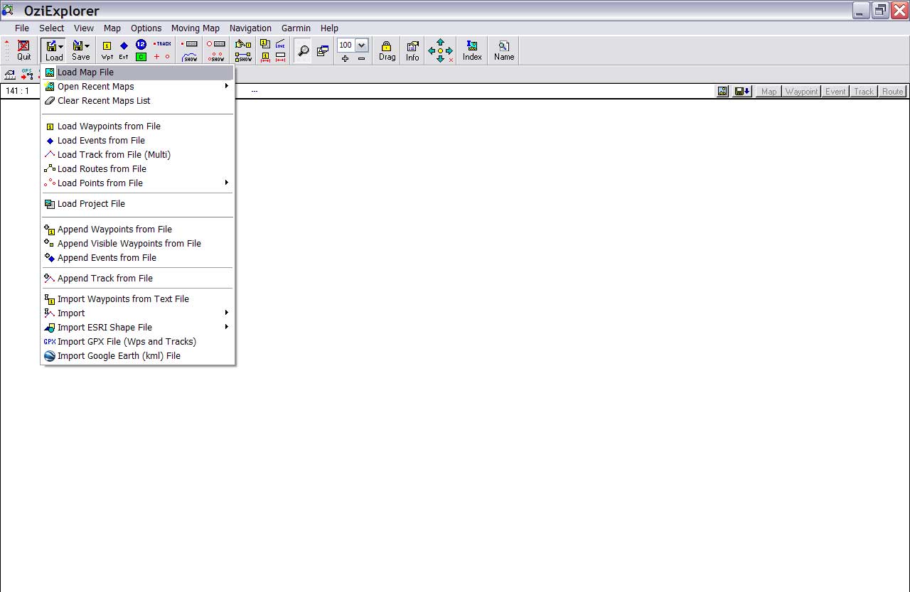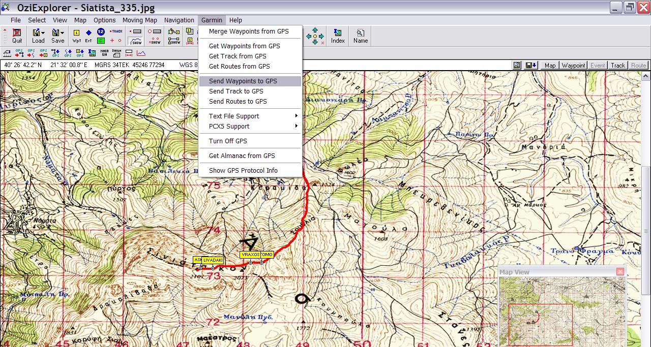 Για να φορτώσουμε τα αρχεία αυτά πάνω στον χάρτη επιλέγουμε από το μενού Load – Load Waypoints from File και Load – Load Track from File αντίστοιχα και τα στοιχεία αυτά εμφανίζονται πάνω στον χάρτη.