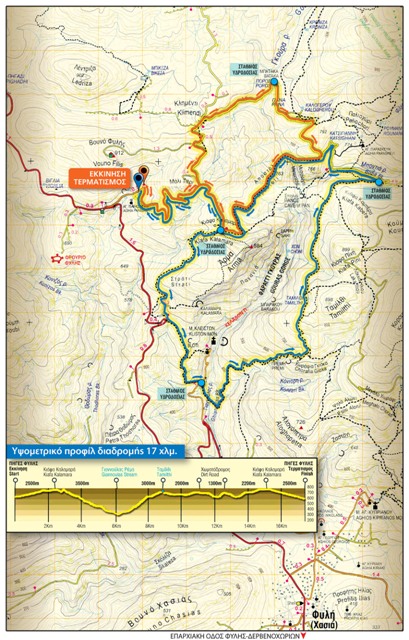 στον χάρτη απο το site του συλλόγου φαίνονται οι δύο διαδρομές για τους δρομείς που θα ξεκινήσουν στις 9,30 απο την Αγ. Παρασκευή. Εμείς πρέπει να ξεκινήσουμε το αργότερο στις 8 το πρωί απο τη Χασιά για να τους συναντήσουμε καθώς θα έρχονται.