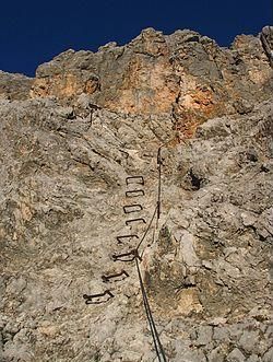 Via ferrata στα Ιταλικά <δρόμος σιδήρου>, είναι μια προστατευμένη διαδρομή αναρρίχησης με συρματόσχοινα και σιδερένιες σκάλες στα δύσκολα περάσματα.