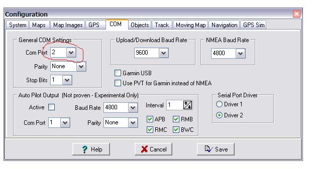 Πιο συγκεκριμένα, πριν συνδέσουμε το καλώδιο, εγκαθιστούμε το προγραμματάκι που βρίσκεται στο συνοδευτικό cd. Εν συνεχεία, συνδέουμε το καλώδιο και κατ' επέκταση το gps. Πάμε στο device manager (δεξί κλικ στο My Computer - Properties - Hardware - Device Manager) και παρατηρούμε ότι δημιουργήθηκε μιά εγγραφή Ports (COM). Αν κάνουμε κλικ στο σταυρουδάκι αριστερά θα ανοίξει από κάτω τη θύρα που δημιούργησε πχ. COM4. Αυτό είναι το βασικό στοιχείο που χρειαζόμαστε για να κάνουμε σωστά τη ρύθμιση στο ozi explorer. Ανοίγουμε το ozi explorer και πάμε File - Configuration και μπαίνουμε στο tab COM. Εκεί δηλώνουμε σε ποια θύρα συνδέεται, δλδ βάζουμε το νούμερο της πόρτας που δημιουργήθηκε.