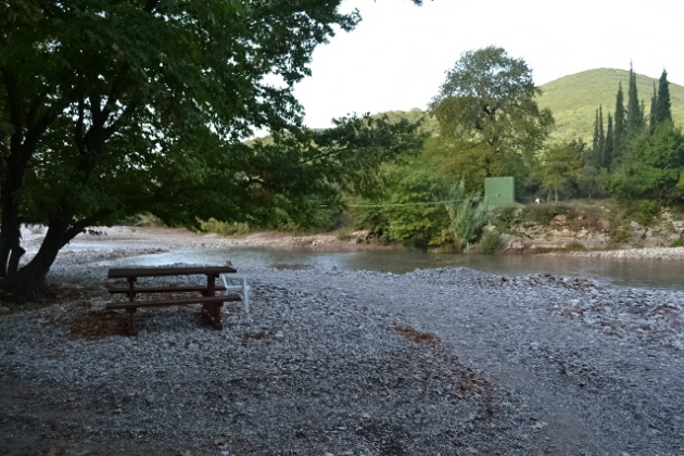 Ένα μικρό προβληματάκι για όσους κοιμούνται ελαφριά, είναι ότι ο δρόμος που διασχίζει το ποτάμι περνάει μέσα από το χώρο κατασκήνωσης και έτσι ίσως σας ενοχλήσει κάποιο αυτοκίνητο που αργά το βράδυ ή νωρίς το πρωί διασχίζει το ποτάμι. Ένας σίγουρος που θα περάσει, είναι ο ένας ταβερνιάρης που το σπίτι του είναι στην άλλη μεριά του ποταμού. Έχει και πρόβατα που τα περνάει κι αυτά σαλαγώντας τα με το ...παπί. Έτσι τον γνωρίσαμε και μας κάλεσε στο μαγαζί.