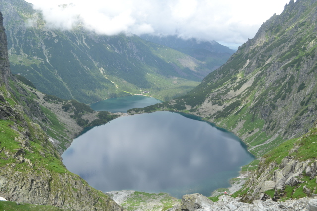 Στη τελευταία μας μέρα μας στη πολωνική πλευρά είπαμε να επισκεφθούμε τη πιο δημοφιλή τοποθεσία στα πολωνικά Tatras, τη λίμνη Morskie Oko, τη μεγαλύτερη λίμνη των Tatras. Αφού ταξιδέψαμε για περίπου 1 ώρα φτάσαμε στη τοποθεσία Pialenica Bialezanska, όπου είναι η είσοδος του πάρκου. Στο πάρκινγκ πρέπει να είχε πάνω από 500 αυτοκίνητα και πούλμαν έρχονταν συνεχώς και ξεφόρτωναν κόσμο. Αφού πληρώσαμε για το πάρκινγκ και πάλι είσοδο για το πάρκο πήγαμε να πάρουμε άμαξα για να κάνουμε τα 8 χλμ του δρόμου. Τα 50€ όμως που μας ζήτησαν για τους τέσσερις μας μας φάνηκαν υπερβολικά πολλά και μαζί με εκατοντάδες Πολωνούς πήραμε το δρόμο για το καταφύγιο. Αν και συνήθως οι δρόμοι είναι ανιαροί το ωραίο περιβάλλον αλλά κι ο καιρός που σιγά σιγά άνοιγε μας έκαναν να καταπίνουμε τα χιλιόμετρα. Σε κάποια σημεία μονοπάτι κόβει τις ανηφορικές στροφές του δρόμου. Τελικά μετά από 2 περίπου ώρες φτάσαμε στο καταφύγιο Schronisko Morskie Oko 1400m, δίπλα στη λίμνη. O κόσμος μέσα στο καταφύγιο αλλά και στην όχθη θύμιζε μυρμήγκια. Στη θέα της κορυφής Rysy 2500μ, της ψηλότερης της Πολωνίας, και στο γαλάζιο ουρανό αποφάσισα να ξεκινήσω για εκεί πάνω. Με γρήγορο ρυθμό περιέτρεξα τη λίμνη και πήρα το ανηφορικό μονοπάτι για το πιό πάνω επίπεδο, που βρισκόταν η λίμνη Czαrny 1583μ. Αυτό που μου έκανε εντύπωση ήταν ότι όλο το μονοπάτι μέχρι σχεδόν τη κορυφή ήταν χτισμένο με τεράστιες πέτρες-πλάκες. Αφού κύκλωσα κι αυτή τη λίμνη ξεκίνησα στο πολύ ανηφορικό μονοπάτι που μετά από 1,5 ώρα με έβγαλε στο βράχινο κομμάτι της προκορυφής. Εκεί υπάρχουν αρκετά κομμάτια ασφαλισμένα με αλυσίδες. Σύντομα από τη προκορυφή βγήκα σε μικρό διασελάκι κι από εκεί γρήγορα στη κορυφή. Η θέα στη Σλοβάκικη πλευρά εξαιρετική, αλλά τα σύννεφα πλησίαζαν πάλι απειλητικά. Μετά από κάποιες φωτογραφίες πήρα την επιστροφή. Πριν φτάσω όμως στην προκορυφή ο καιρός πάλι έκλεισε και από τη λίμνη Czarny η γνώριμη βροχή με συνόδευε μέχρι το πάρκινγκ. Στο ταξίδι μάλιστα της επιστροφής προς τη Σλοβακία πέσαμε σε μια από τις πιο βίαιες καταιγίδες που έχω ζήσει.