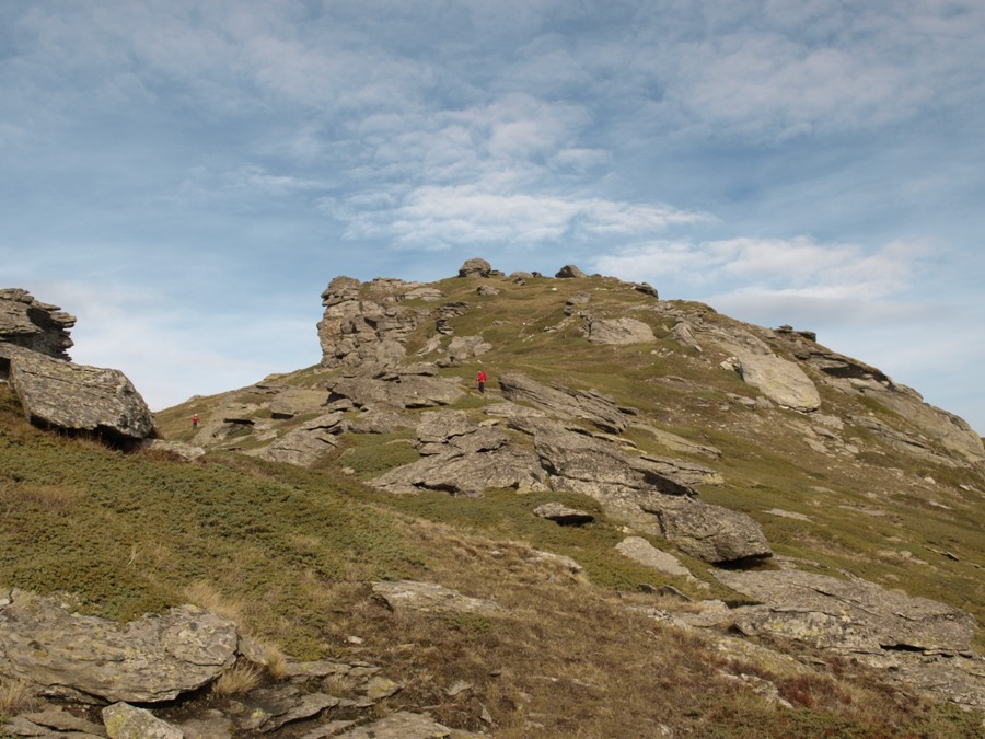 Από την κορυφή κατηφορίζουμε σε σέλωμα, στην συνέχεια ανηφορίζουμε σε πλαγιά με διάσπαρτους βράχους και οχυρώσεις και κατευθυνόμαστε προς επιβλητική βραχοσυστάδα που την περνάμε από αριστερά, συνεχίζουμε σε φαρδιά ράχη με χαρακώματα και οχυρώσεις που στο τέλος της δεσπόζει η συνοριακή πυραμίδα οπού και ο προορισμός μας, συνεχίζουμε περνάμε από ερείπια και καταλήγουμε στην κορυφή με πυραμίδα και αμπριά.