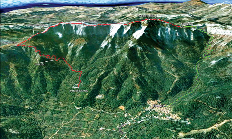 Μια κυκλική διάσχιση στη βόρεια κορυφογραμμή του βουνού.