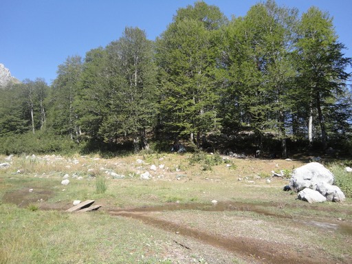 Σεμπέβρη του 2015 ξεκινήσαμε από το πευκόφυτο από την εκκλησία και αφου θα πάρουμε για λίγο τον χωματόδρομο θα μπούμε αριστερά στο δάσος.Παρότι οι 2 από την παρέα ξανακάναμε την διαδρομή 2 χρόννια νωρίτερα θα την χάνουμε συχνά(υπάρχουν σημάδια,όχι όμως αρκετά και η βλάστηση σε συνδυασμό με πεσμένα δέντρα έχουν κλείσει αρκετές φορές το μονοπάτι).Αφου θα μπούμε στις οξυές θα μας πιάσει και μια σύντομη μικρή μπόρα.Μετά από 3.30 ώρες θα βγούμε στο χωματόδρομο που έρχεται από την χρυσή λίγο πριν το καμπίστιο και θα τον πάρουμε μέχρι την λίμνη μουτσαλιά όπου θα κατασκηνώσουμε(υπάρχουν και πηγές εκει,απο τα ωραιότερα μέρη για κατασκήνωση).Την άλλη μέρα θα ξαναπάρουμε τον χωματόδρομο μέχρι το διάσελο πάνω και κάτω αρένας.Λόγω του ότι έχουμε καθυστερήσει και το μεσημέρι υπάρχει περίπτωση καταιγίδας δεν θα πάμε κορυφή και θα τραβερσάρουμε κάτω από την κάτω αρένα και σε ένα ομαλό σημείο θα κατηφορίσουμε για την κρυμμένη λιμνούλα.Λίγο πιο πριν θα συναντήσουμε κοπάδι(τα τσομπανόσκυλα γάβγιζαν αλλά ήταν χαλαρά,περισσότερο τους ενοχλούσε ο δικός μας ο σκύλος) και ο τσομπάνης θα μας δείξει και για πηγή εκεί.Η λιμνούλα δεν έχει νερό(κρατάει μεχρι τελος ιούνη περίπου).Απο την λίμνη θα μπούμε σε πολυ όμορφο δάσος οξύας και μετά από λίγο θα βγούμε στον χωματόδρομο που έρχεται από χρυσή.Εκεί πάμε αριστερά(βόρεια) για κανά μισάωρο όπου θα φτάσουμε στο σημείο που έρχεται το μονοπάτι που πήραμε την προηγούμενη μέρα από το πευκόφυτο.