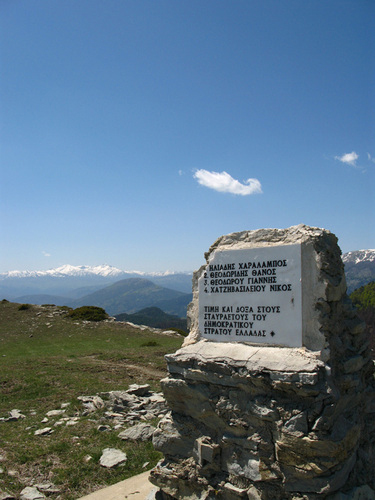 4 Το μνημείο των Μαχητών του ΔΣΕ. Στο βάθος ο Σμόλικας.