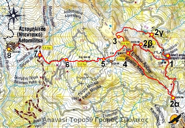 1 Χάρτης προσανατολισμού Λίμνες Αρένες Επάνω Αρένα.