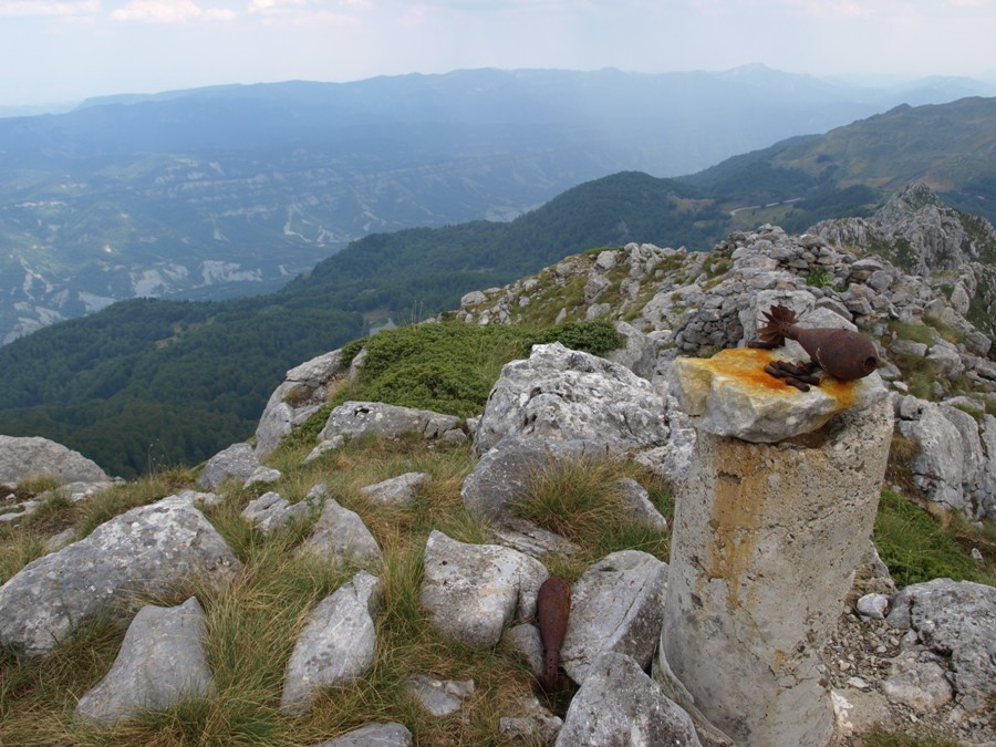 Συνεχίζουμε στην ράχη αλλάζοντας κατεύθυνση σε Νοτιοανατολική ΝΑ περνάμε από προκορφή με οχυρώσεις και διάσπαρτο πολεμικό υλικό και καταλήγουμε στην ρίζα του επιβλητικού κώνου της κορυφής. Συνεχίζουμε στην ίδια κατεύθυνση ακολουθώντας την ράχη και καταλήγουμε σε κορυφή με ορόσημο (4).