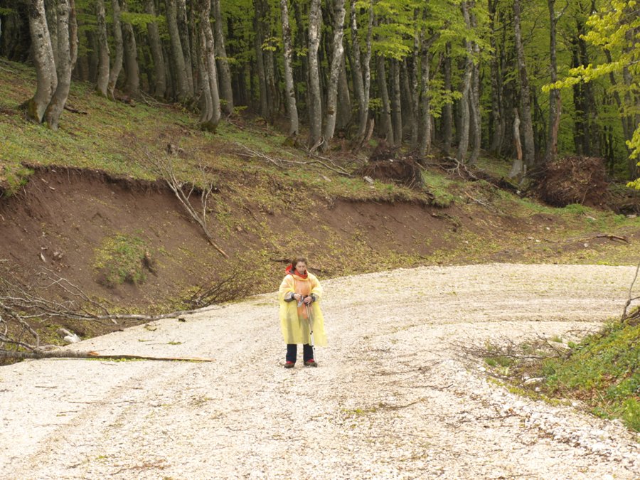 Συνεχίζουμε στον χωματόδρομο μπαίνοντας σταδιακά σε δάσος οξιάς και ξέφωτα, φτάνουμε σε ρεματιά αλλάζουμε κατεύθυνση σε ανατολική μπαίνουμε για τα καλά στο δάσος ώσπου καταλήγουμε σε ξέφωτο λιβάδι που στο κέντρο του δεξιά μας συναντάμε διασταύρωση και ξύλινη ποτίστρια (4).