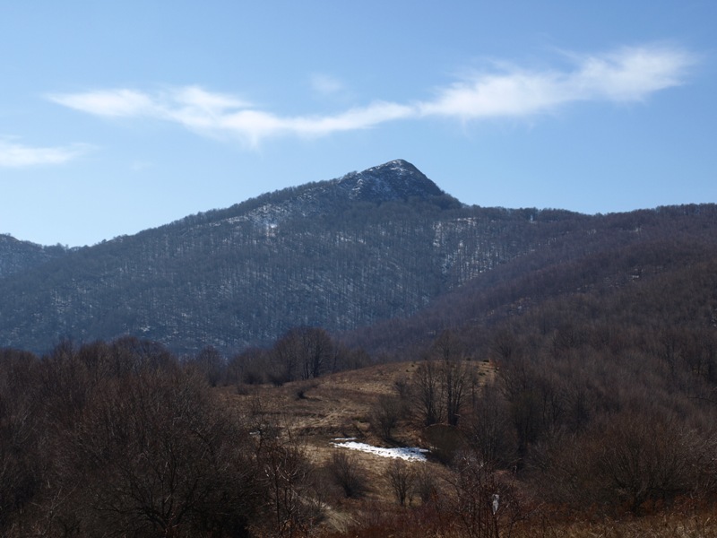 Εμείς αφήνουμε τον δρόμο και συνεχίζουμε σε μονοπάτι (Κόκκινα Σημάδια με Σπρέι) μέσα από αραιό δάσος οξιάς. Το μονοπάτι κινείτε με Νότια Ν κατεύθυνση στην ράχη σχετικά ομαλής πλαγιάς, συναντάει τον δασικό δρόμο (5), που πάει στα Μεγάλα Λιβάδια και στην «Τούρκικη Βρύση», τον περνάει απέναντι στην συνέχεια ανηφορίζουμε και καταλήγουμε σε ράχη της Νοτιοδυτικής πλευράς της κορυφής σε υψόμετρο 1540Μ (6) με χαρακτηριστικά βράχια.
