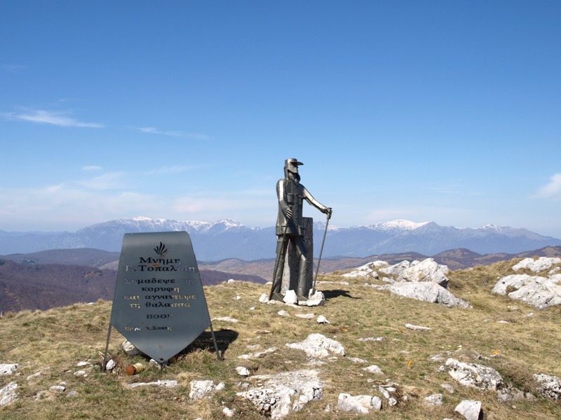 Στην κορυφή εντυπωσιάζει γλυπτό με ορειβάτη να αγναντεύει τον Θερμαϊκό. Κατά την άποψη μου θεωρώ ότι πρέπει να αποφεύγονται τέτοιες παρεμβάσεις στις κορυφές, όμως όταν γίνονται να γίνονται με την επάρκεια και την αισθητική του καλλιτέχνη που σέβεται την κορυφή όπως η συγκεκριμένη καλλιτεχνική παρέμβαση.