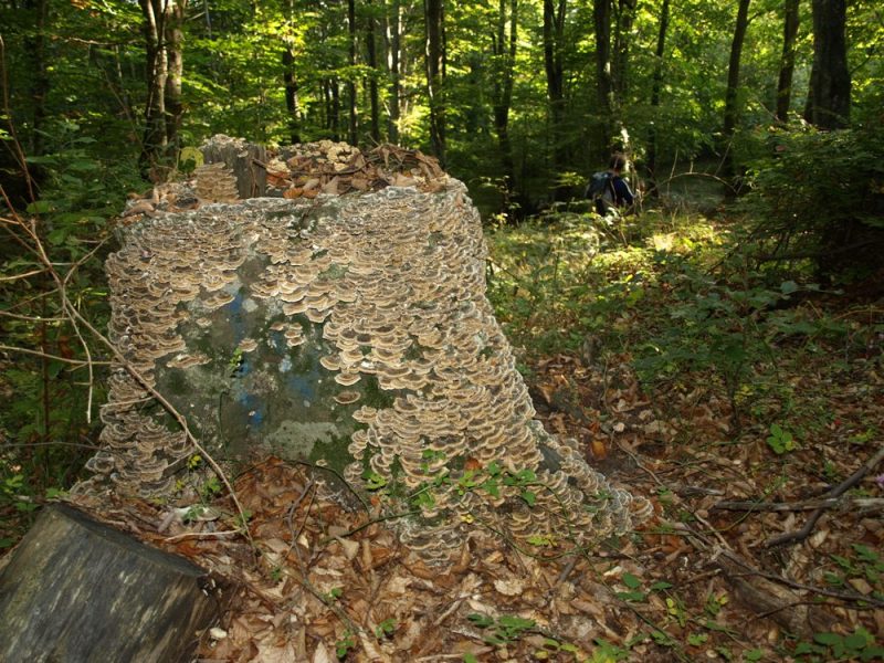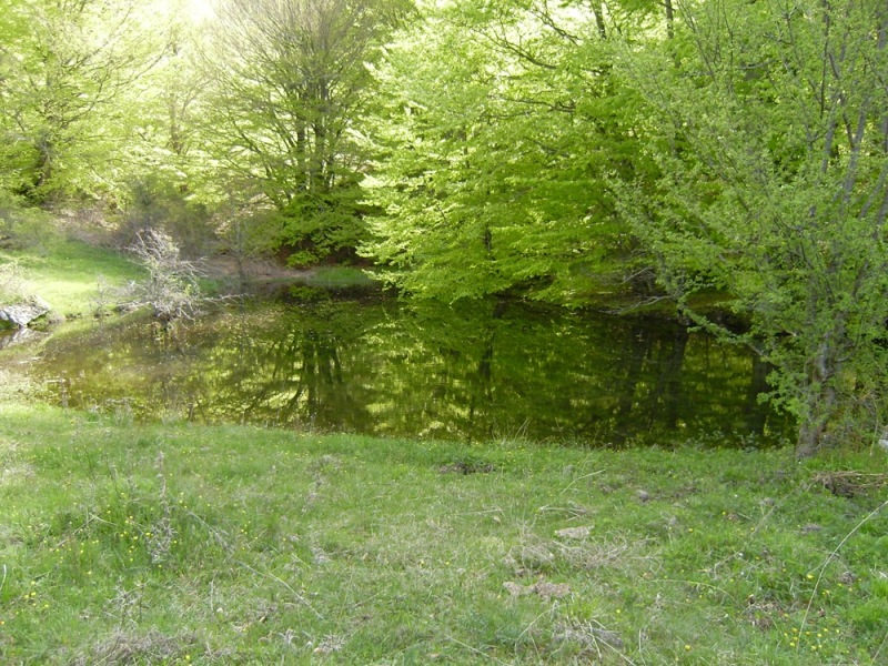 Επιστρέφουμε και παίρνουμε το μονοπάτι, κατηφορίζουμε με κατεύθυνση Νότια Ν σε πλαγιά με αραιή βλάστηση και πεύκα, στην συνέχεια στριβούμε Δυτικά Δ ώσπου καταλήγουμε σε ξέφωτο πλάτωμα, προχωρώντας δεξιά μας κάτω από μεγάλες οξιές συναντάμε μικρή λίμνη (9), με νερό το μεγαλύτερο διάστημα του χρόνου και ειδικά την άνοιξη είναι πανέμορφη. Συνεχίζουμε περνάμε ρεματιά και κατηφορίζουμε σε ξέφωτη λουρίδα αλλάζοντας κατεύθυνση σε Νοτιοδυτική ΝΔ και στην συνέχεια Νότια Ν ώσπου μπαίνουμε για τα καλά σε όμορφο δάσος με οξιές ακολουθώντας κακοτράχαλο τρακτερόδρομο και κατηφορίζουμε έντονα φτάνοντας σε δασικό δρόμο έχοντας δεξιά μας ρέμα (10).