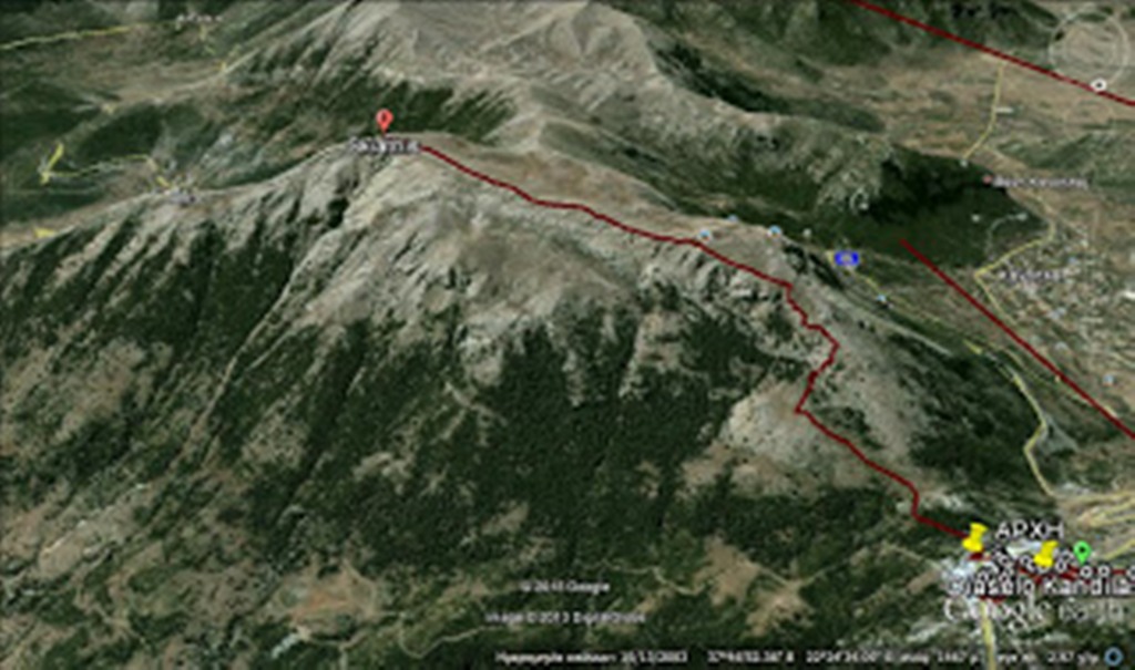 Στην διαδρομή μας συναντάμε ένα μικρό εκκλησάκι τον Άγιο Κων/νο. Περισσότερο μοιάζει για καταφύγιο έκτακτης ανάγκης παρά για εκκλησάκι. Μια ολιγόλεπτη στάση και συνεχίζουμε πλέον την περιήγηση μας στην κορυφογραμμή. Υπολογίζουμε ότι σε μίση ώρα θα προσεγγίσουμε την κορυφή.
