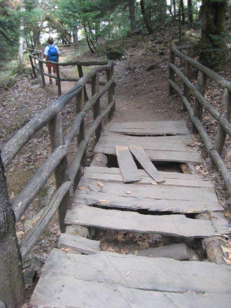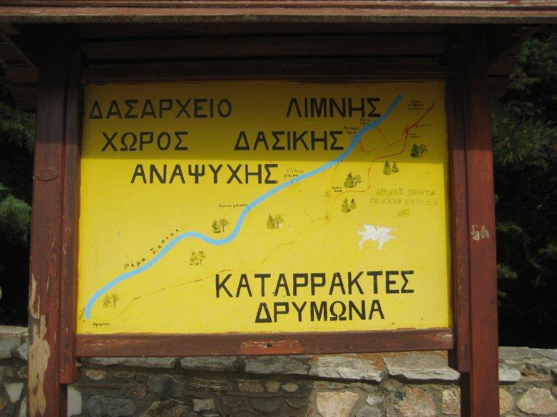 Το ΠΣΚ που μας πέρασε η σύζυγος με έπεισε να πάμε για μπανάκι στις Ροβιές στη Βόρεια Εύβοια. Το Σάββατο το πρωί όμως, λίγο η συννεφιά λίγο η αλμύρα, αποφασίσαμε να μη πάμε για μπάνιο αλλά να δούμε κανένα άλλο αξιοθέατο της περιοχής. Ρωτήσαμε και μας είπαν για τους καταρράκτες της Δρυμώνας. Και το αποφασίσαμε. Για να παμε στη Δρυμώνα πήραμε το δρόμο για το μοναστήρι του Όσιου Δαυίδ και αφού περάσαμε το μοναστήρι και το χωριό της Δρυμώνας φτάσαμε στους καταρράκτες. Ο χώρος είναι διαμορφωμένος για αναψυχή και διασχίζεται από ένα σύντομο μονοπάτι που ξεκινάει από την άσφαλτο λίγο πάνω από παιδική χαρά και χώρο αναψυχής και ξανακαταλήγει λίγο πιο πάνω στην άσφαλτο δίπλα σε αναψυκτήριο και το κτίριο του Δασαρχείου. Το μονοπάτι είναι με καγκελάκια, γεφυράκια, παγκάκια και άλλες ξύλινες κατασκευές που πρέπει να στοίχισαν πανάκριβα αλλά τώρα πια είναι μισοσάπιες και κάποιες και επικίνδυνες. Ο χώρος πάντως παραμένει ωραίος αν και οι καταρράκτες δεν υπήρχαν στις αρχές Σεπτέμβρη που πήγαμε εμείς. Μόνο δύο λιμνούλες και ένα ρυάκι που τις τροφοδοτούσε.Αυτά για τους καταρράκτες.