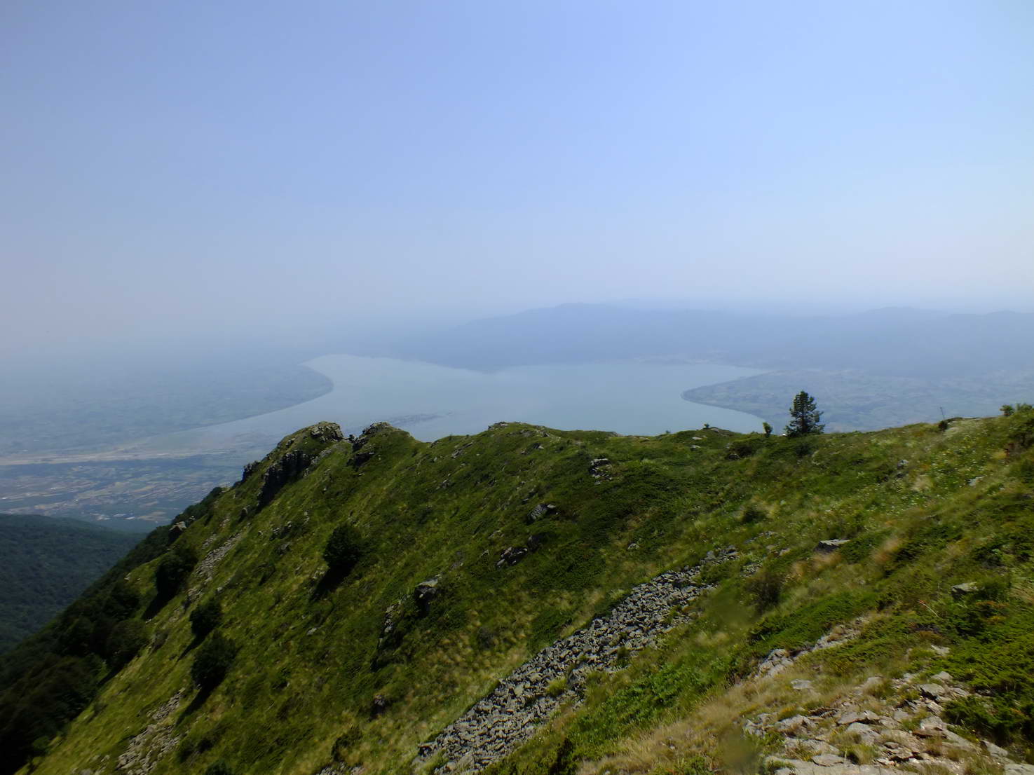 Από το ορόσημο και μετά το μονοπάτι κινήτε πάνω σε κόψη που σου προσφέρει φανταστική θέα στις λίμνες Δοϊράνη και Κερκίνη, από εδώ για κορυφή θέλετε ένα 2ωρο.