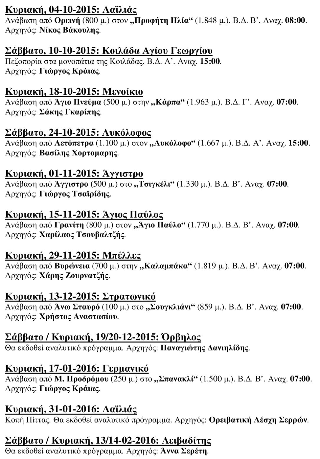 Αναβάσεις Ορειβατικής Λέσχης Σερρών 2015-2016